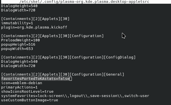 There has got to be a better way to change the default start menu favourites on Plasma than to sort through almost 1.5 thousand SQL database entries and then copy the editor file to /etc/skel/.local/share/kactivitymanagerd/resources/