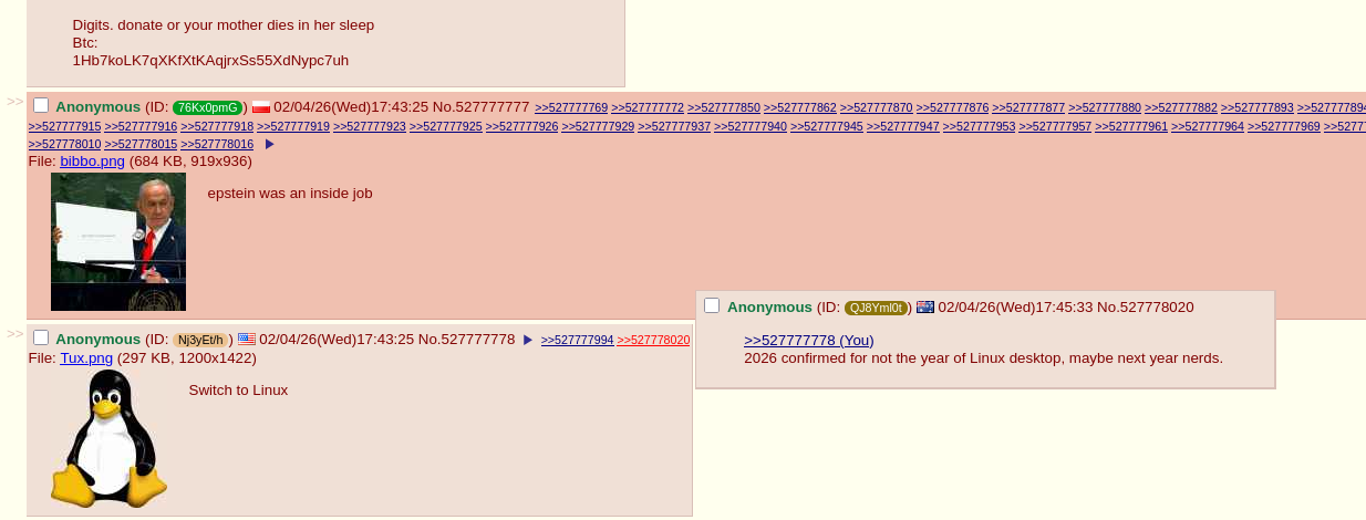 >>108051979>If you want a desktop OS then avoid using Debian. What you want would be Fedora or Arch, or at least Ubuntu.Ah ok Anon, thanks. I will need to do more research into what I should pick then.