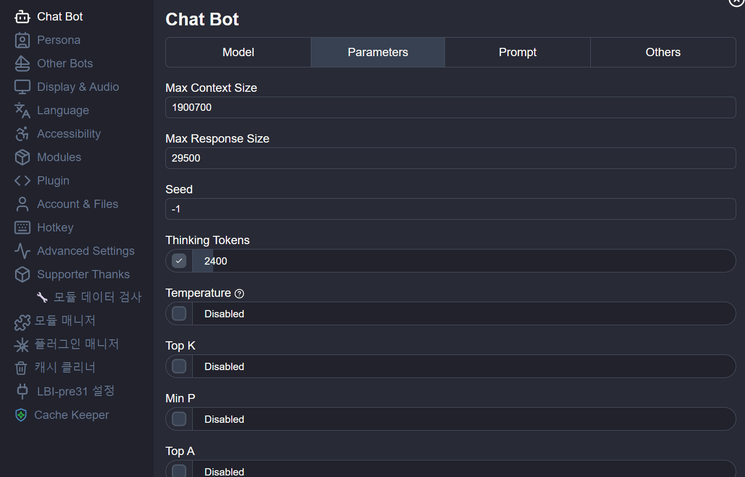 >>108063761What does disabling it do to the parameter that gets sent with the request? Set it to 1.00?