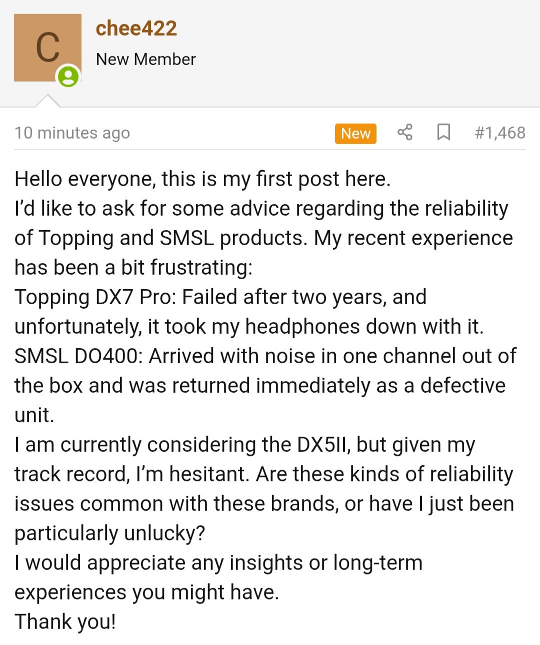 >>108087864https://www.head-case.org/forums/topic/28658-topping-eha-5/You can read a full review here - it was bad starting from the schematics with no protection which would fry your headphones, down to bad soldering.