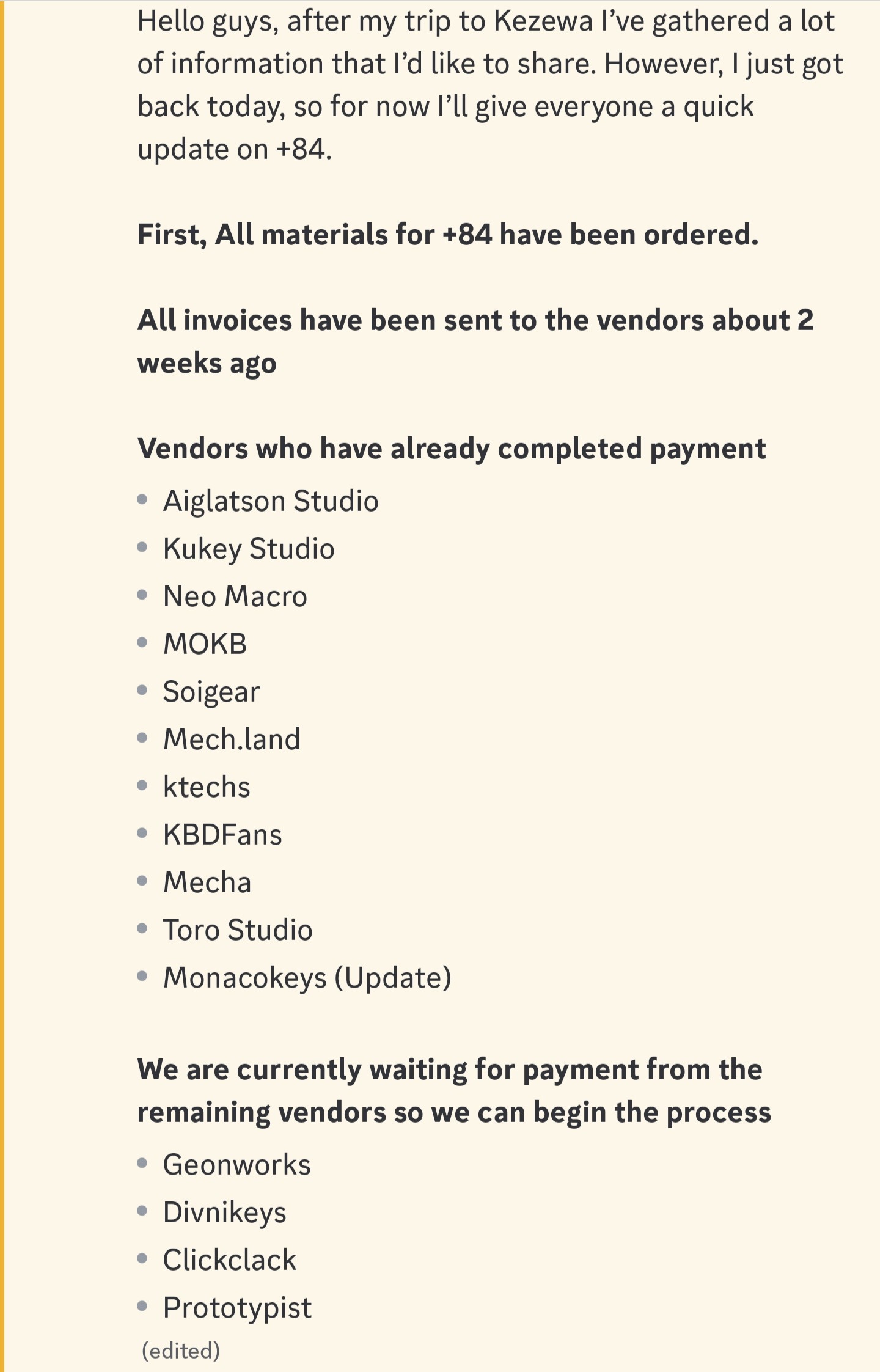 Hammer Time EditionPrevious: >>108030505 >Keyboard recommendation template:https://pastebin.com/n220xk9V>Find vendorshttps://www.alexotos.com/keyboard-vendor-list // Up-to-date list of reputable vendors with brief descriptionshttps://keycaplendar.firebaseapp.com // Tracker for current and upcoming keycap group buys>This keyboard stuff is so expensive!https://aliexpress.com (or Taobao if you know how)>Learn about MX-type switches ("mechanical keyboard switches")https://rentry.org/mkg_switches // Introductory guidehttps://www.theremingoat.com // Switch reviewshttps://www.switchesdb.com // Compare force curves>Split and non-standard layout resourceshttps://compare.splitkb.comhttps://keyboard-design.com>What does ______ do to a keyboard's sound?https://blacksimon.tv/science (Google sheet)>Practice typinghttps://monkeytype.comhttps://www.keybr.comhttps://thetypingcat.comhttps://play.typeracer.com>How Cherry switches do backlighting, and why it's not idealhttps://rentry.org/mkg_backlight