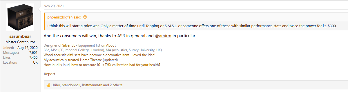 >>108093439I didn't know the Atom2 was snake oil, you must be pretty braindead jeeto...You understand ASR was founded because Amir got laughed out of every science forum after he fabricated ABX testing and tried to claim he had golden ears, right? The SINAD shit is just the latest grift he's pedalling now that Arny Kreuger is dead and can't call him out anymore.