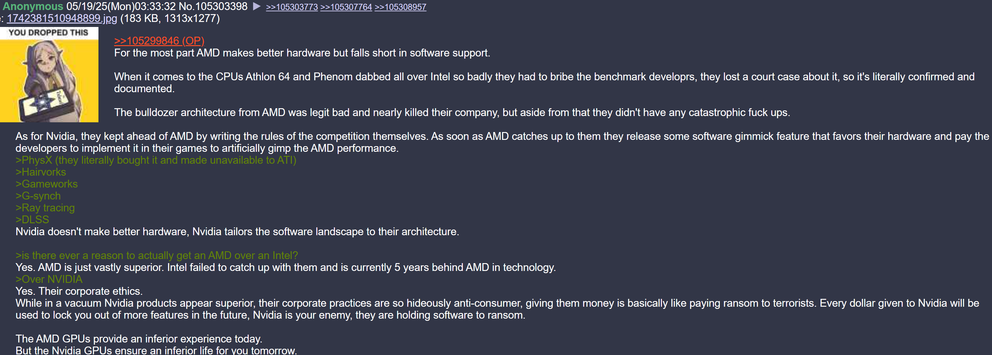 If you judge "performance" by sheer FPS no matter how shitty the image qt and input latency, THEN he was right. And you know how stupid gaymors are.