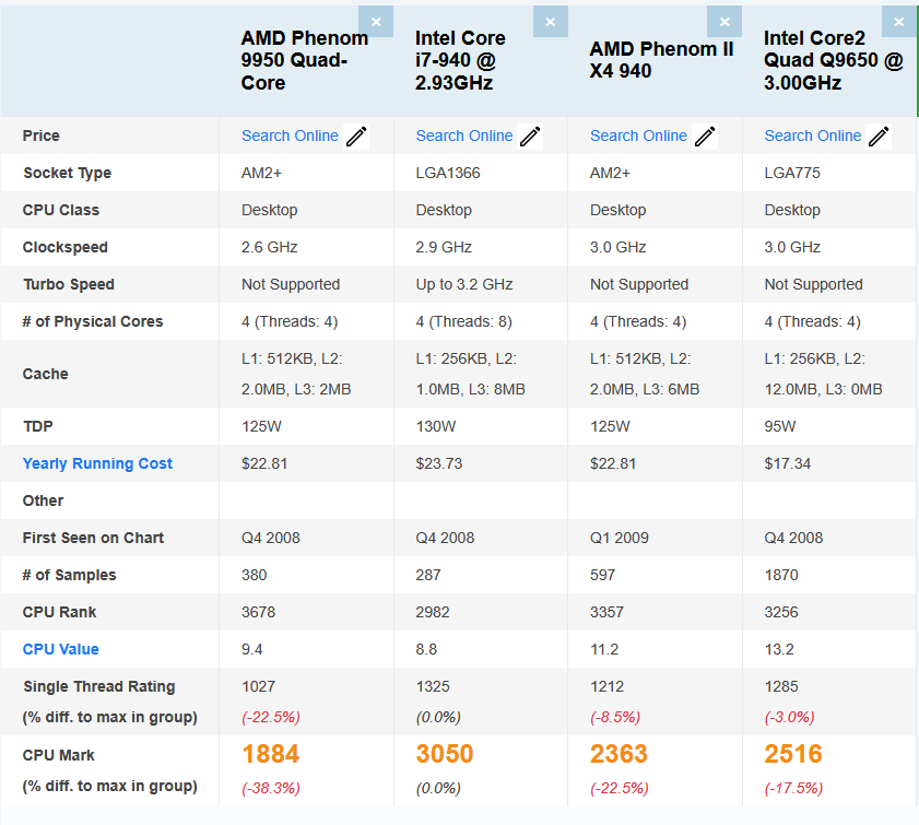 Phenom had the same or worse IPC as Phenom II (latter having more L3 cache) and clocked lower, Phenom II had the same IPC as Core2, how in the fuck is Phenom at 2.6ghz going to beat an i7 which had better IPC than Core2?