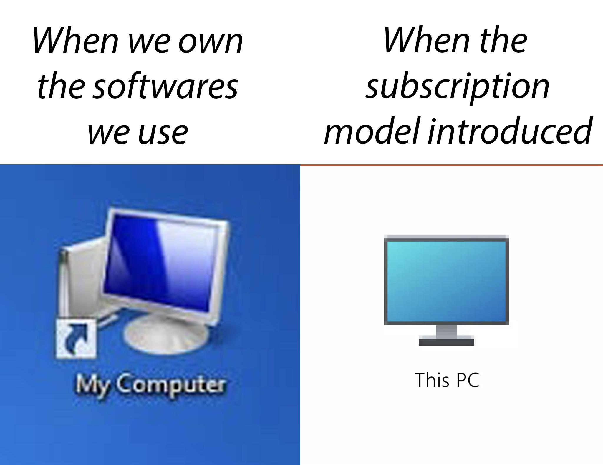 >>108098257>when we owned the software we usedNever? I'm getting real fucking tired of this bullshit actually. The end user has never owned the commercial software they used. Unless you're a corporation that commissioned a piece of software or wrote the software yourself on your own private hardware. Even GPL or BSD software is still licensed software that the user does not own.
