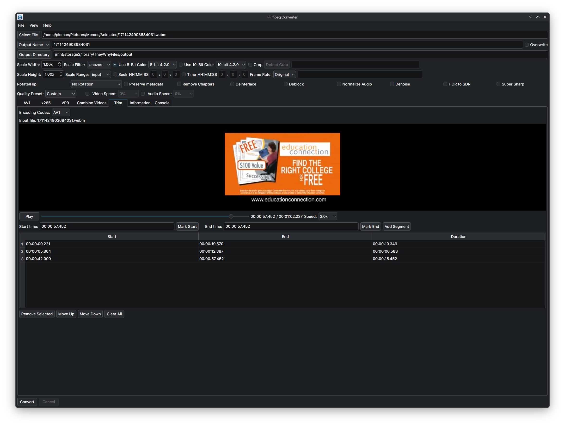 >>108100332i made a semi shitty frontend for it:https://github.com/orlfman/FFmpeg-Converter