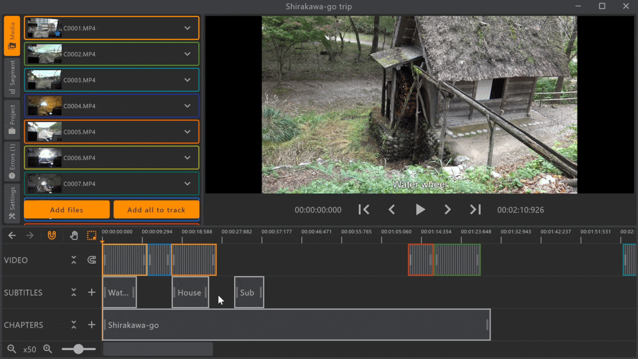 >>108100332>>108105718For working on multiple videos in one project without re-encoding, with subtitles and chapters, I had to make my own program - Ume Movie Editor https://sengami.itch.io/ume-movie-editor[spoiler]It's absolutely proprietary.[/spoiler]