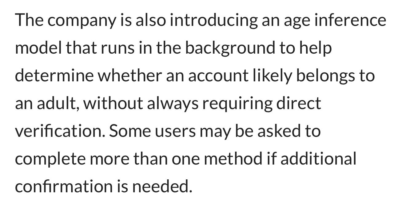 >>108101006>...age inference model that analyzes metadata like the types of games a user plays, their activity on Discord, and behavioral signals like signs of working hours...How does one trick this? I freelance from home in work group chats, chat with friends and don't play games. Will that be enough?