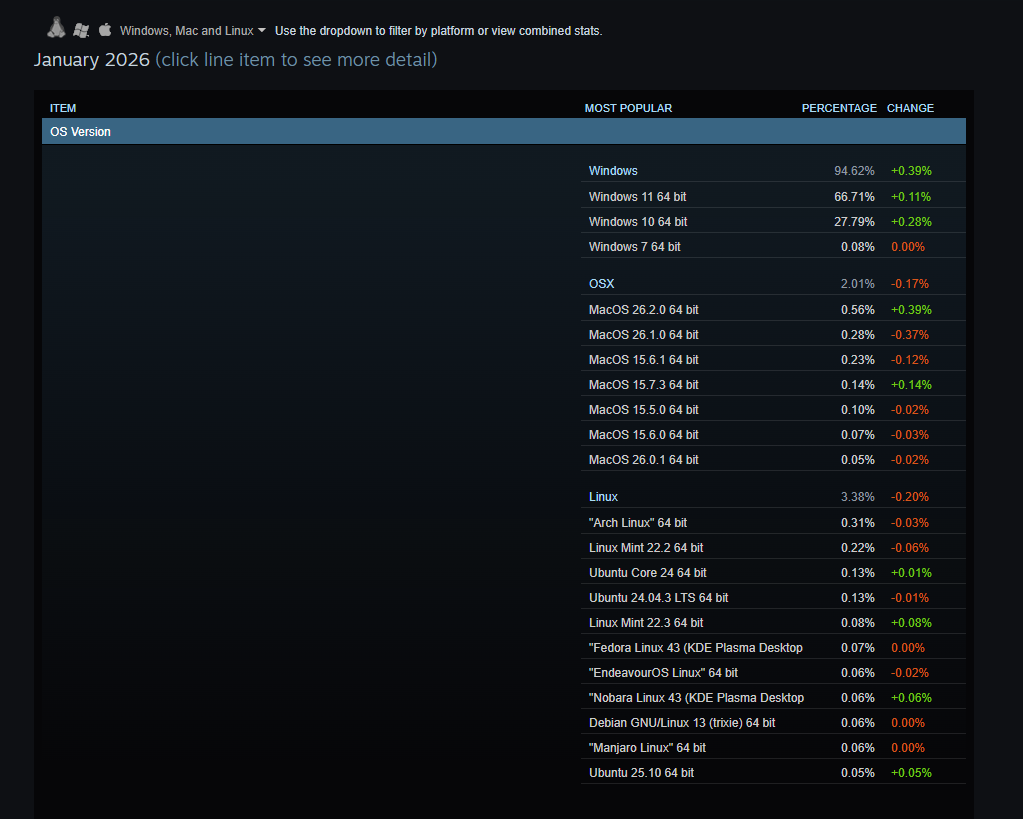 >>108104383>Linux is still Linux, will always remain a geek nicheTrue. Its usage is down a cunt hair but when your numbers are in the margin of error a cunt hair is too big to swallow.