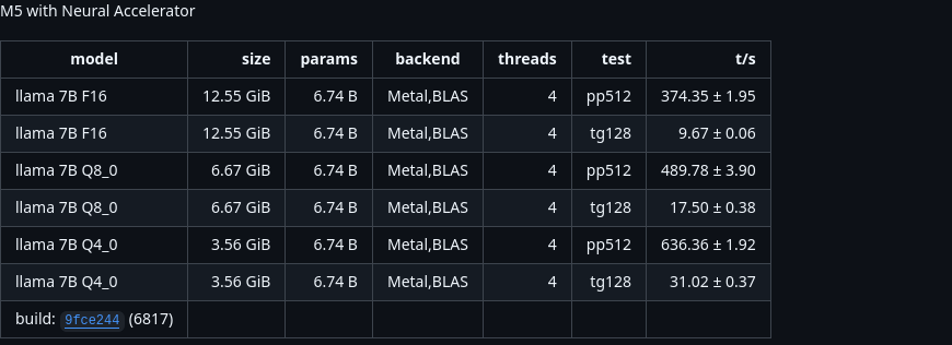>>108110491>Prompt processing timeIt's still shit, the M5 is 3x faster than prior generations but if you scale it up to a Max configuration, it is still slower than something like a DGX Spark which has 2x the PP performance like for like and nearly the same die size shows that Apple has a long way to go.At best if there is a M5 Ultra, it means it will still be faster than a DGX Spark but slower than a RTX 5070. Granted, at the very least, the fact that you can get at least a proper GPU's speed albeit slow with the architecture is at least now worth considering for over 128GB of RAM to 512 GB of RAM for price to performance.