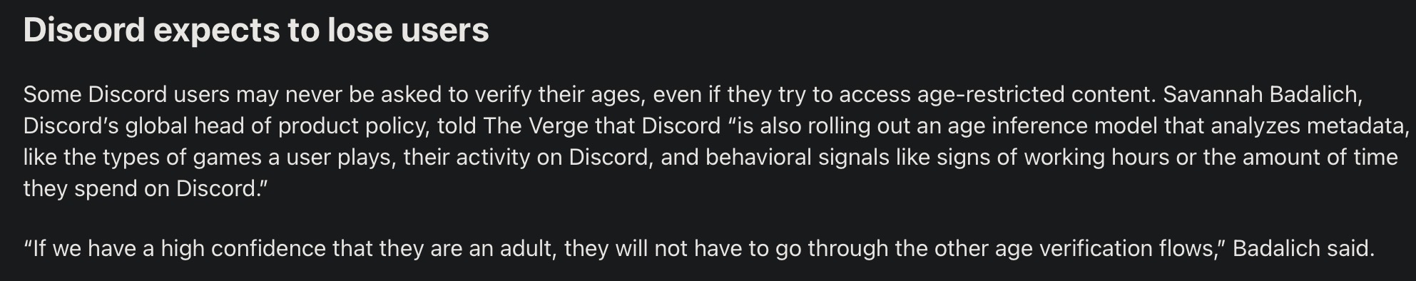 Do you guys think Discord seeing me not in calls during normal business hours will mean they don’t ask me to age verify?