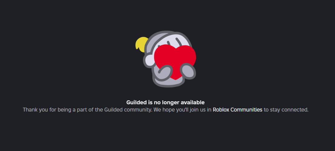 >>108105580Guilded was literally KILLED by Roblox, it was almost the perfect clone. Roblox now holds the trademark and code for it, so it will never be up again.Funnily enough, it was the merger and forced Roblox account and policies that killed it. I wonder how much this will hurt Discord.