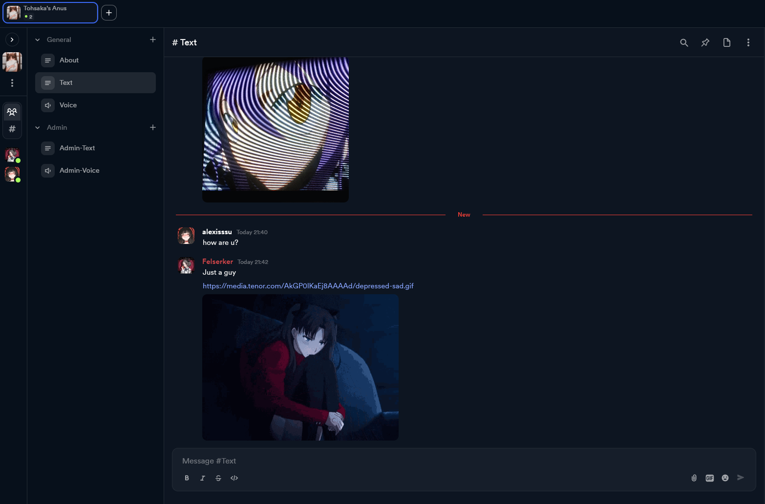 >>108107593>As I don't need text,You do. You think you don't but you do. Text is what makes it a proper discord replacement. Media sharing in real life often comes with a text message attached to the upload as a caption or explanation.