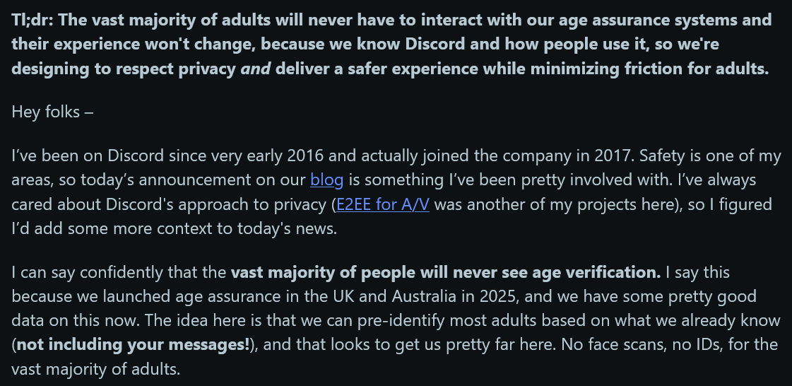 >>108129207Official Statement by Matrix about the recent Age Verification on Discord:https://matrix.org/blog/2026/02/welcome-discord/