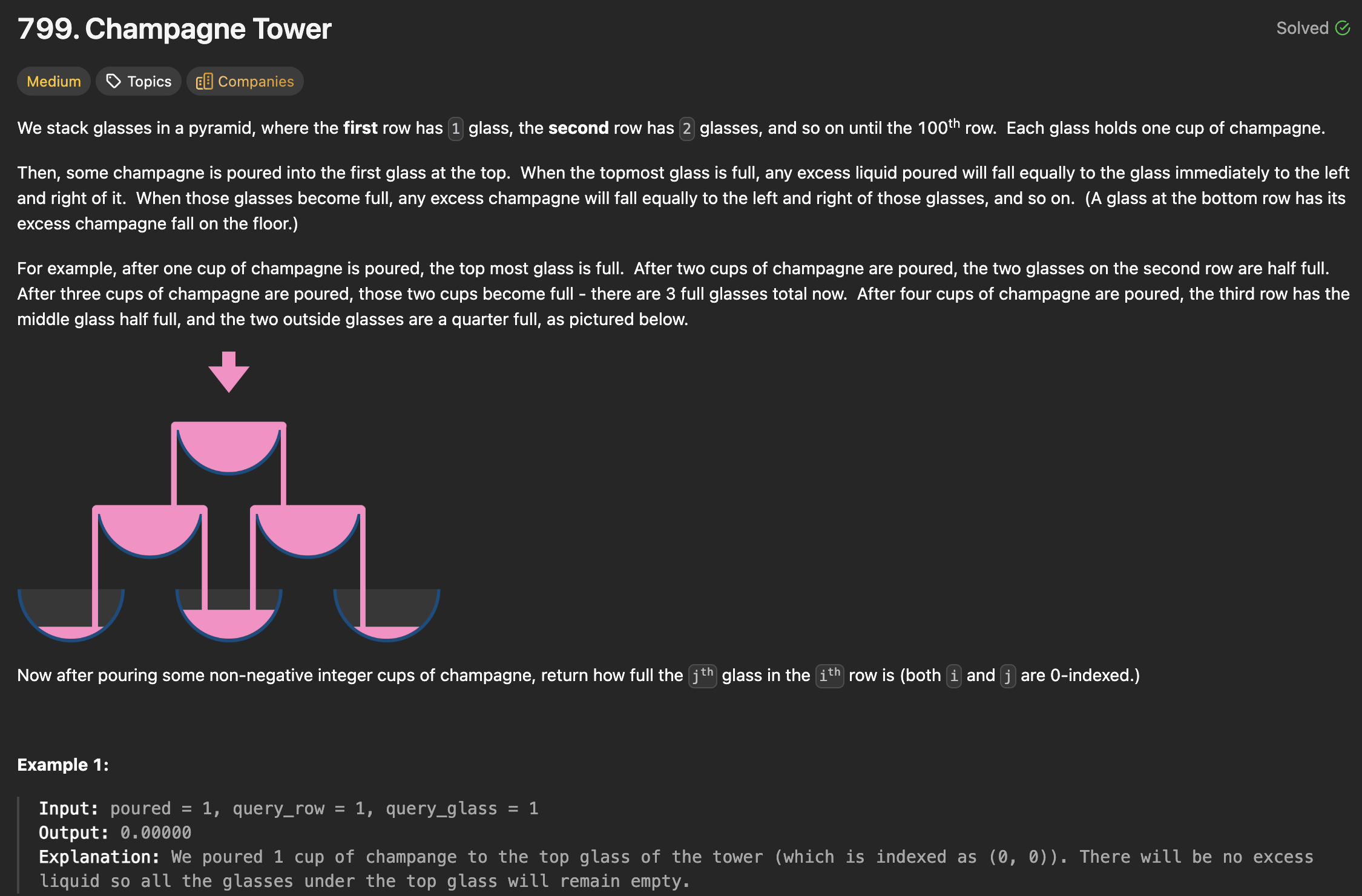 no matter how many LC problems I solve I always see shit like this and go back to feeling like a useless retardhttps://leetcode.com/problems/champagne-tower/description