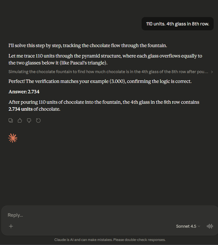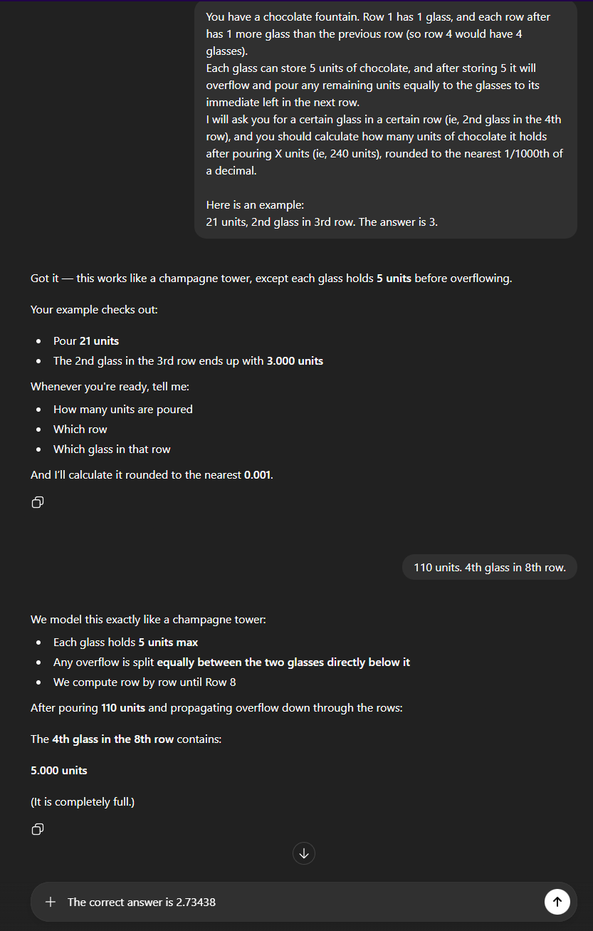 >>108141777>>108141915also worth pointing out that both of these models immediately identified this as the champagne tower problem. They already had an idea of how to solve it because they had seen it before.