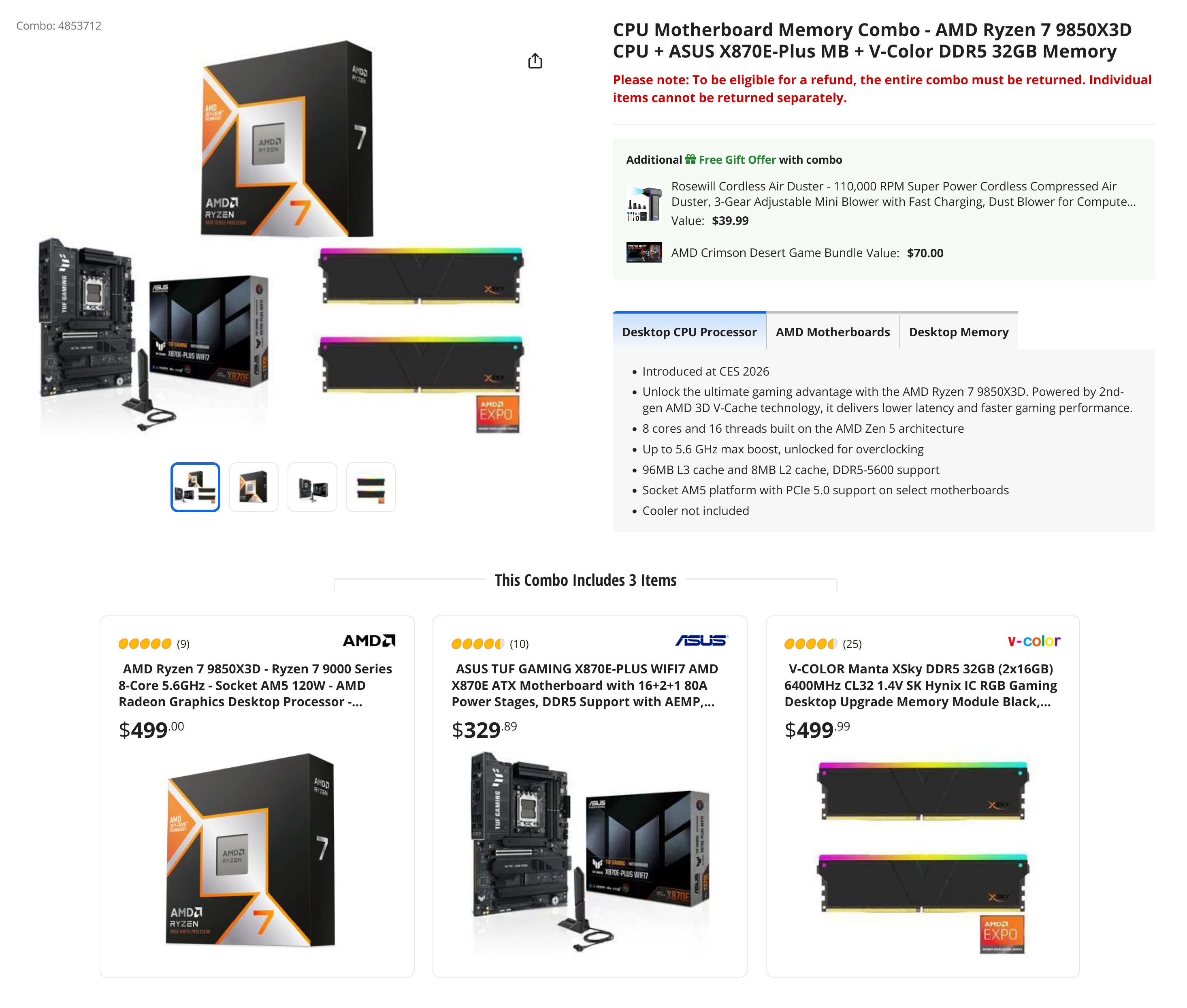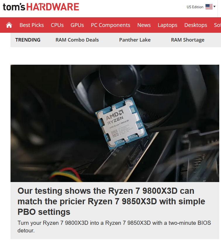 That Newegg 9850x3D + 32GB of RAM deal sounds so tempting. Too bad I already have a 7800x3D. I also got my RAM free last May in another Newegg deal.All I know is you complainers better buy now or shut up.