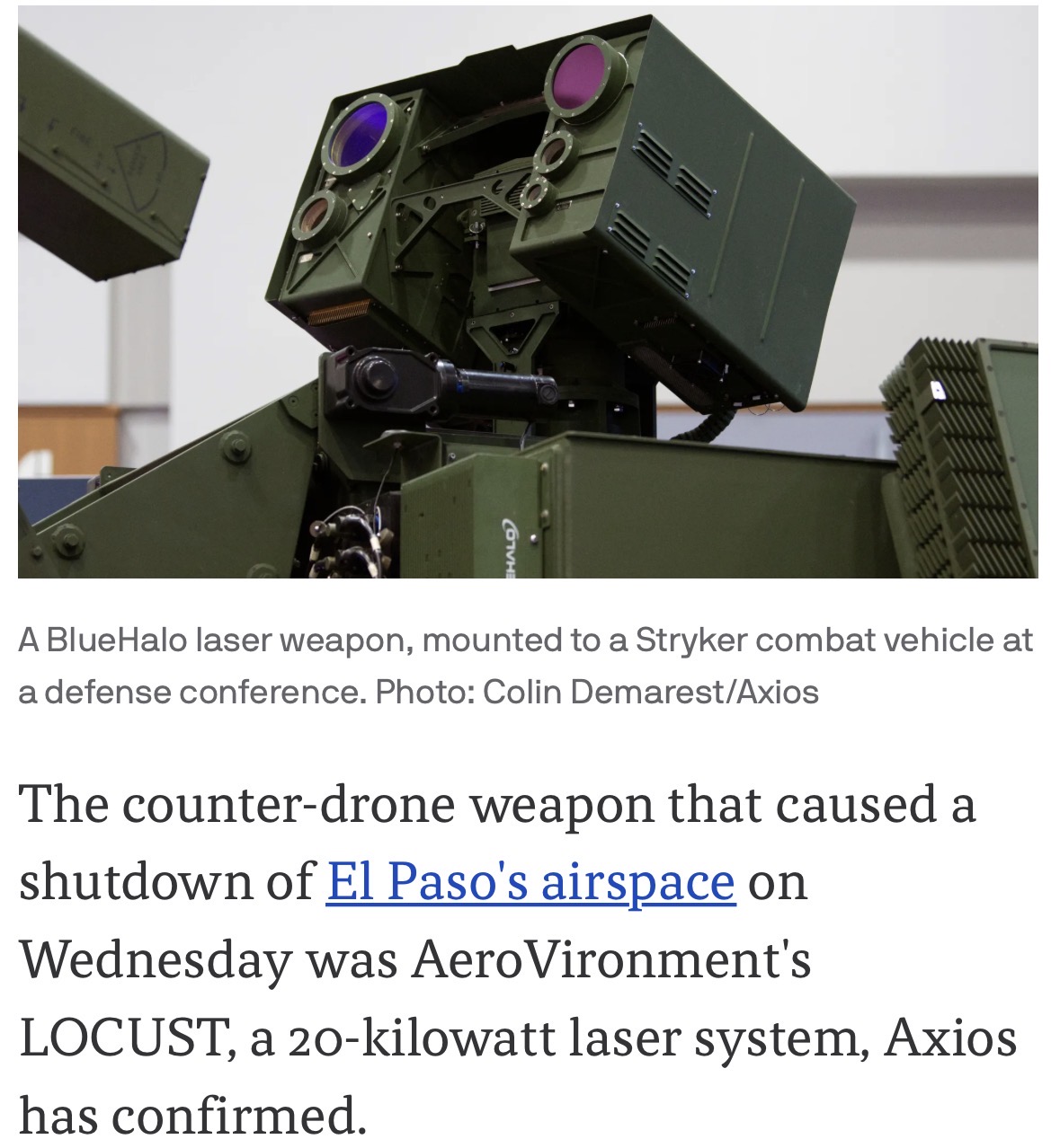 > The use of the 20-kilowatt LOCUST direct-energy weapon, which has not previously been reported, is a rare known example of the U.S. deploying cutting-edge counter-drone technology capable of defeating flying objects at a fraction of the cost of traditional interceptor missiles.i cannot believe the stupidity of officials who bought into this fake israeli laser. it is either money laundering or stupidity.please, Pentagon retards, take canculator and canculate how much energy there is a single bullet's poweder charge, then compare it with this retarded device. do like germans. a gun with compukter to trace those radio emitters.why dont isreaelis ban that laser toy? are they selling it to retards? play fair. this is pure physics