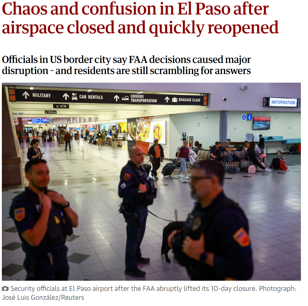 >>108146325there was something more than lasers being used at el paso airport. I have access to a piece of equipment that was going nuts during the shutdown and then just before they opened the airport again it went back to normal.