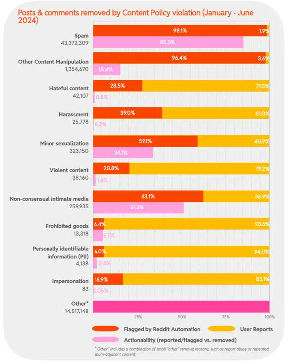 >>108157597To be even more accurate using Reddit as a case study.Out of all content policy violations reports during this period only 0.5% were related with "Minor sexualization".