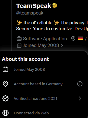 >>108157709Teamspeak 6 breaks encryption and requires a centralized account. Also its not open source.I use TS3 and am happy so far, but they have shown their true colors too. Not a valid nor stable alternative long term.
