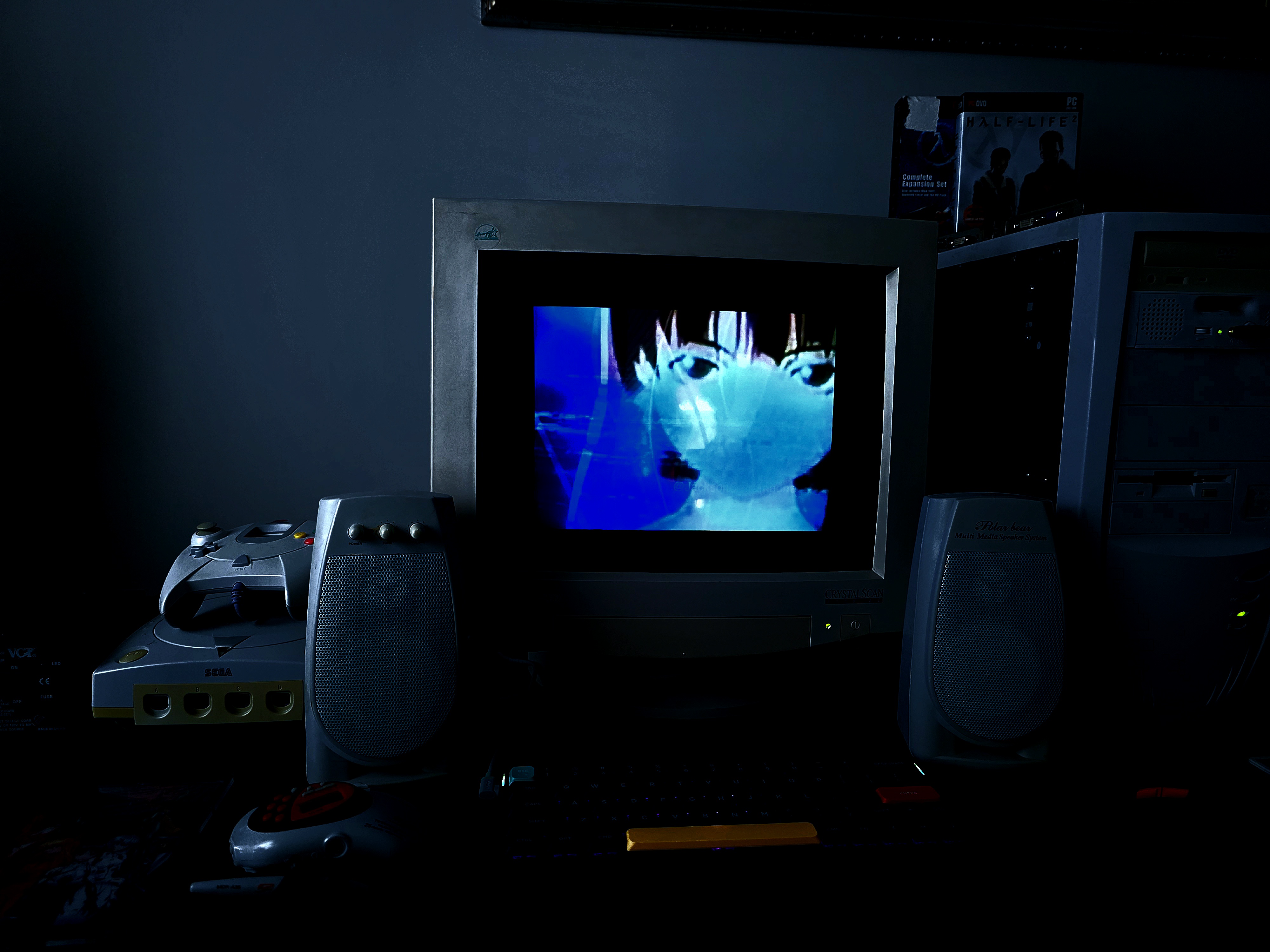 >>108162068>what game is running on your TV?Brightis, it's a Japanese PS1 game. It's kind of like a very stripped-down Zelda clone made by the devs behind games like Actraiser, Illusion of Gaia, and Terranigma (but the story/setting is far less interesting than any of those games').>And why isn't your 2nd monitor in the picture anymore? >.>I was originally gonna put my CRT on the left side of my desk, but found it better to have it on the right-hand side. 2nd monitor's out of frame but still on that arm there; I simply didn't bother swiveling it back into place for the pic.