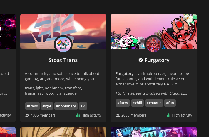 >>1081772596 out of 8 on the very top of the discover page are pozzed. Sure there's a lot of other servers, but these are the first fucking 8.