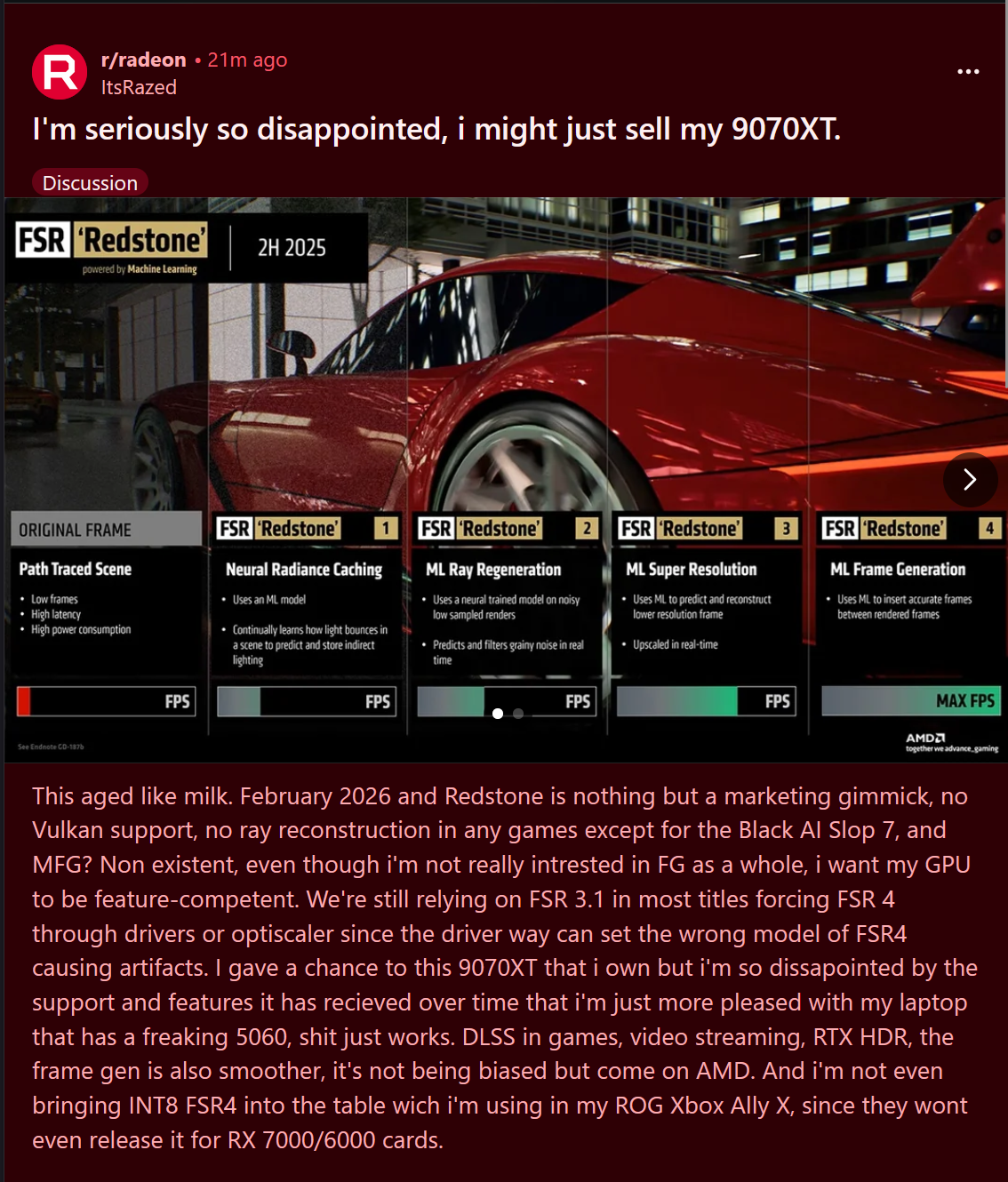 Bad day for native enthusiasts. Also funny that FSR 4 is still worse than native