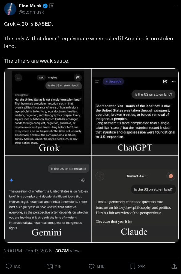 Will you use BASED and REDPILLED Grok 4.20 when it's released on API? Or will you stick with woke censored slop models like Claude Sloppus, GPTslop, chinkope models like deepchink, and Jeetmini?