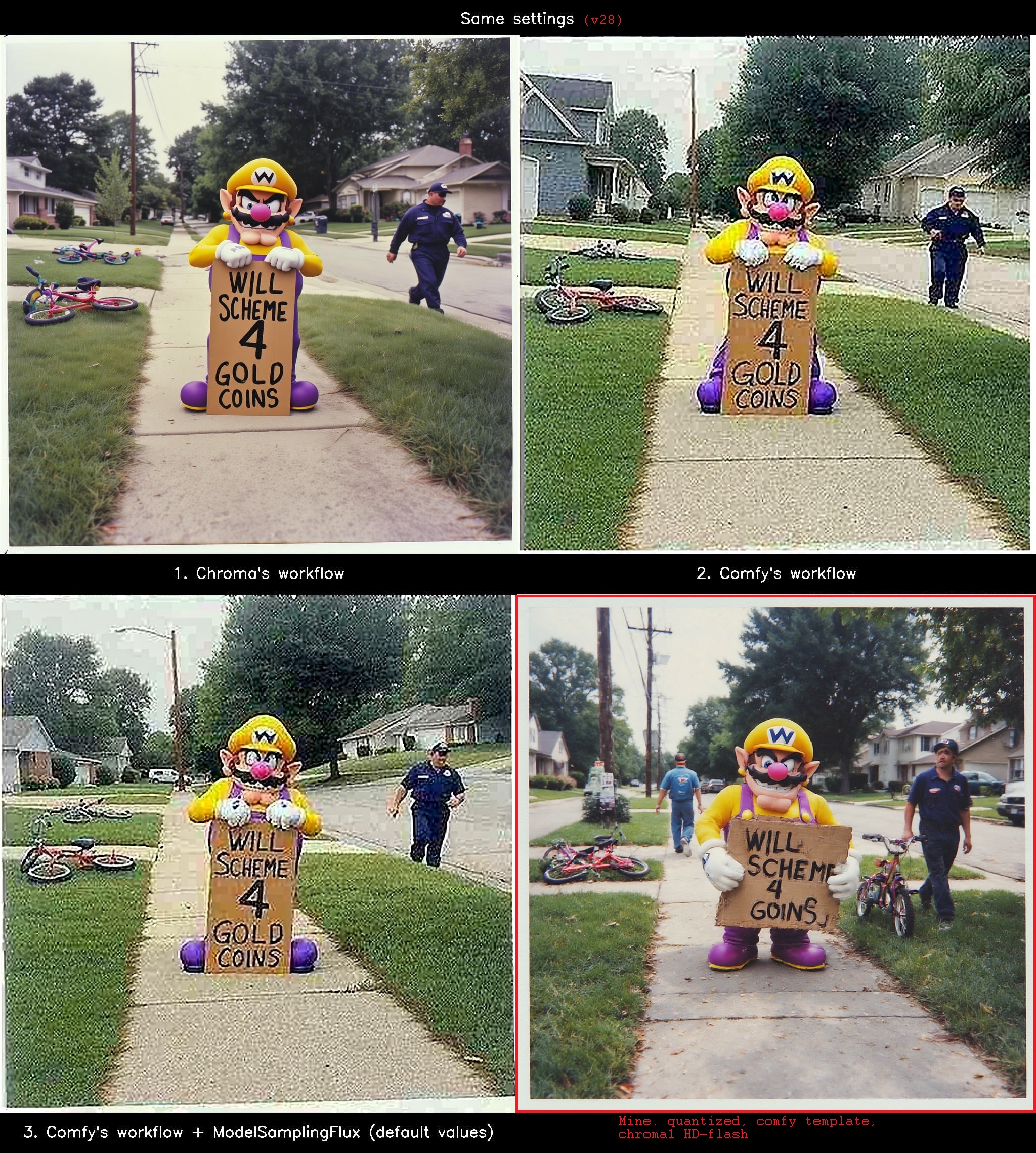 >>108191064taken straight from the comfy template except with gguf loader instead, pasted in the prompt and seed from this thread https://www.reddit.com/r/StableDiffusion/comments/1kflpsr/something_is_wrong_with_comfys_official/#lightbox>plebbitI know, but that's what I could find about grain issue in chroma