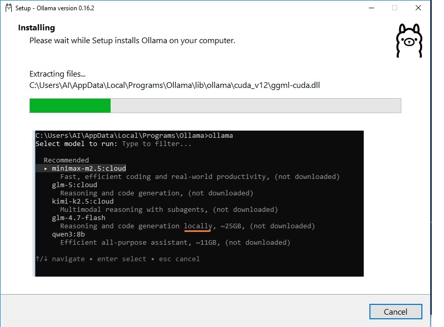 >>108190062>>108189893how do I download a model into it ??I downloaded ollama setup like this:>using windows XP SP3, Pentium 2, 1024MB RAM, Supermium Browser from 2026The windows 10 computer is physcally incapable of accessing internet. But it has better hardware for AI.