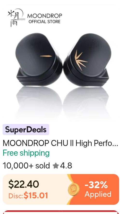 Ali $5 shitbud guideBe American. Get daily coins from widget and gogo match, do saving wednesday, grab sale/saver coupon, grab store coupon. PEQ it to perfection as Crinacle intended.$2 Dawn 1DD$3 EDC Pro 1DD$3 AK6 Pro$4 Rue 1DD$4 Luki 1DD+1subwoofer$5 Libra X 1DD$5 Konoka 1DD+1BA+1subwoofer$5 Kunten 1DD$6 ED9 Pro 1DD$7 Castor 2DD$7 Krila 1DD+1BA$8 Venus 1DD$10 QKZ x HBB 1DD$11 TRN Lucky Bag (5 iems)$12 Waner 1DD$12 Rosefinch 1DD$12 GATe 1DD$13 Chu II 1DD$14 Bunny 1DD$14 PR2 1planar$15 Luna 1planar$18 Decet 5DD$20 LF3 Pro 1DD+1EST+1BA$20 ST7 2DD+5BA$30 VX Pro+ 1DD+8BA