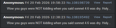 Wow you guys were NOT kidding when you said sonnet 4.6 was dry. Holy...