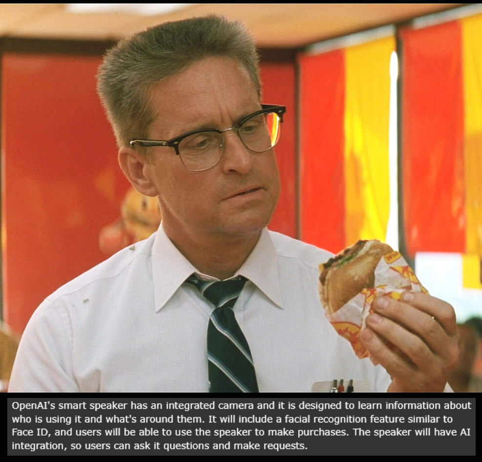 > legendary hardware developer sells you his design company> "our idea is a speaker with a camera that records the user's face and lets them order slop with voice commands> that'll be $6.5 BILLION plus tipIsn't it great.