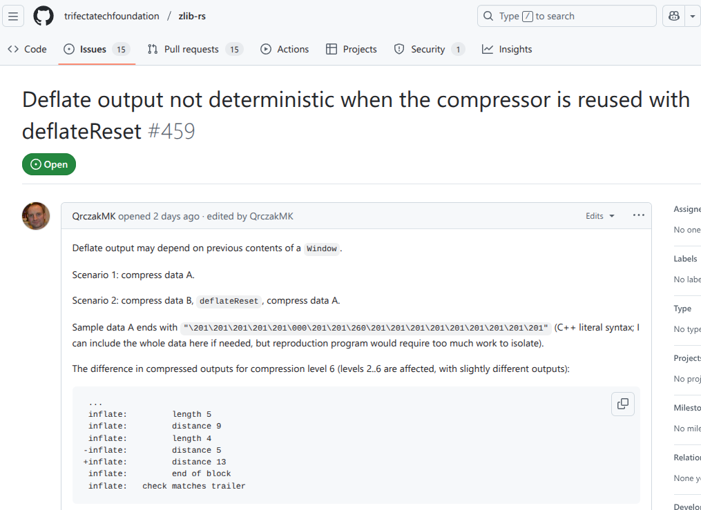 >>108199822>surely this barely functional version 0.1 code written in unsafe C will not have any security issues to worry about, as you can see there is zero reason to use a library like zlib which has been around for 30 years alreadywhat's the thought process here exactly? okay you can write software but shilling some guaranteed buggy shit written in an old language with no proven history makes no sense