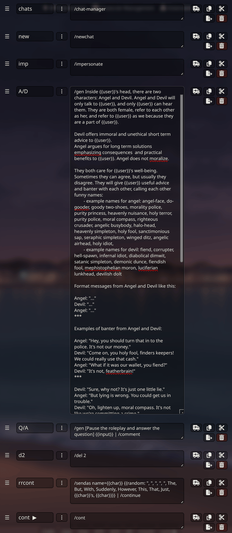 >>108204226Yea ST script can do a lot, Make some custom buttons with Quick Reply options