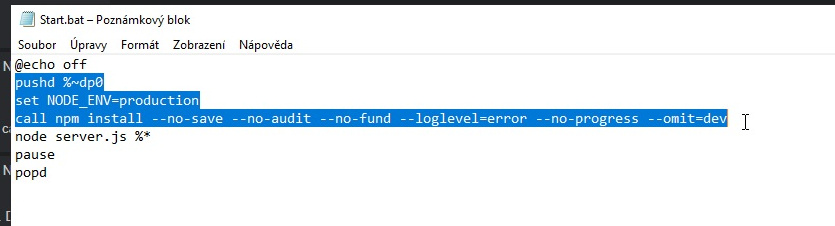 >>108211831in the .bat you use to start it, delete all except>node server.js