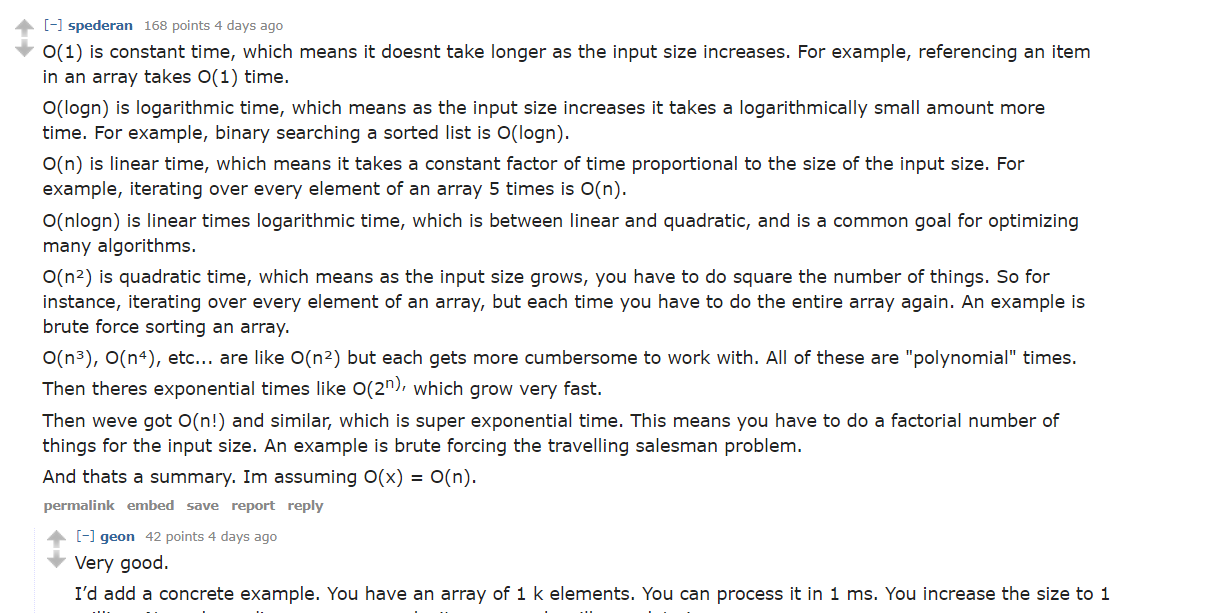 Big O is an elementary concept in mathematics and computer science, one of the first things you learn when you study algorithms and data structures.Yet for some reason most people who talk about it seem to have no idea what it means. Even people who have no reason not to know what it means, like CS graduates and tech workers.Take pic related for example. Almost every single sentence in this explanation is incorrect. Yet it's the most upvoted reply in a CS thread.