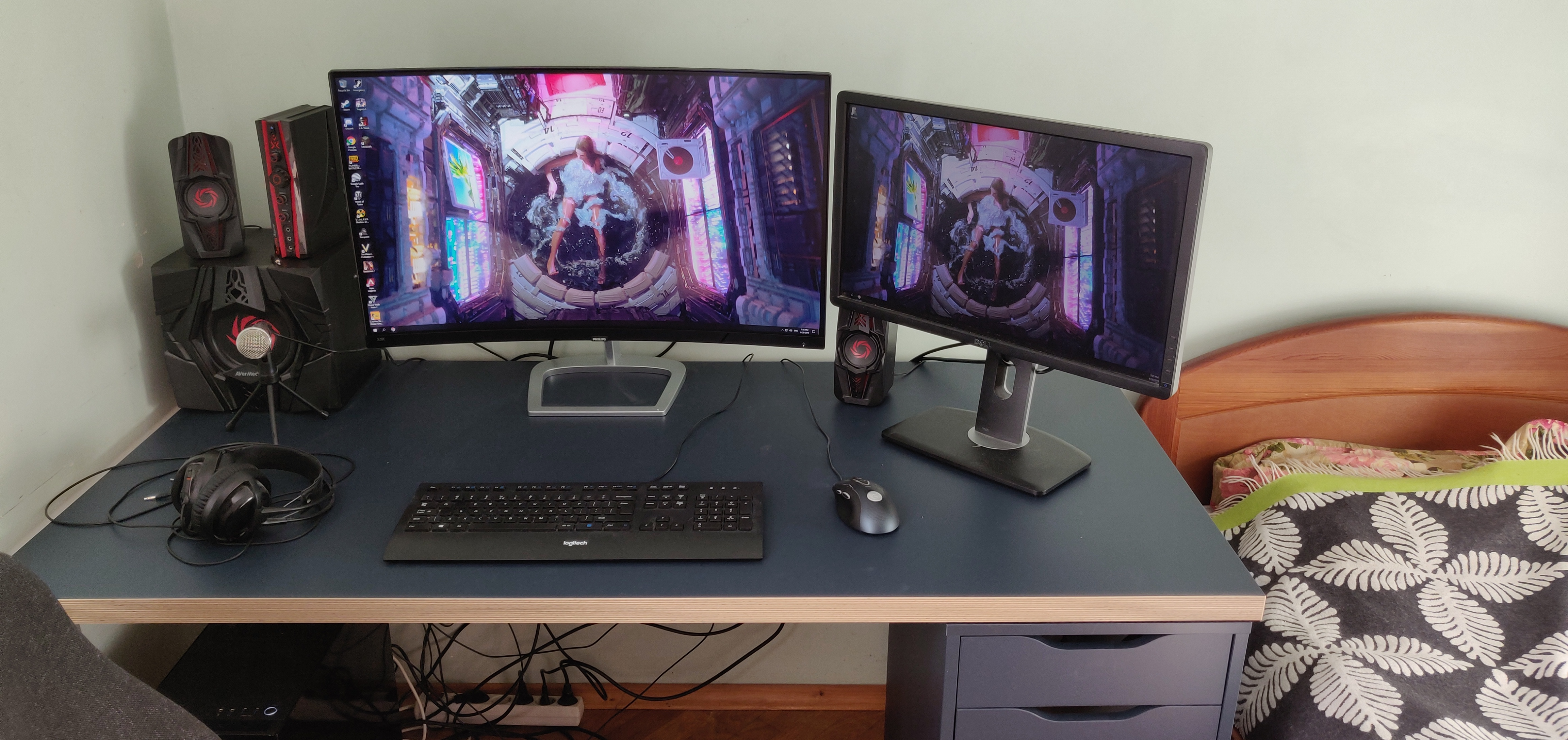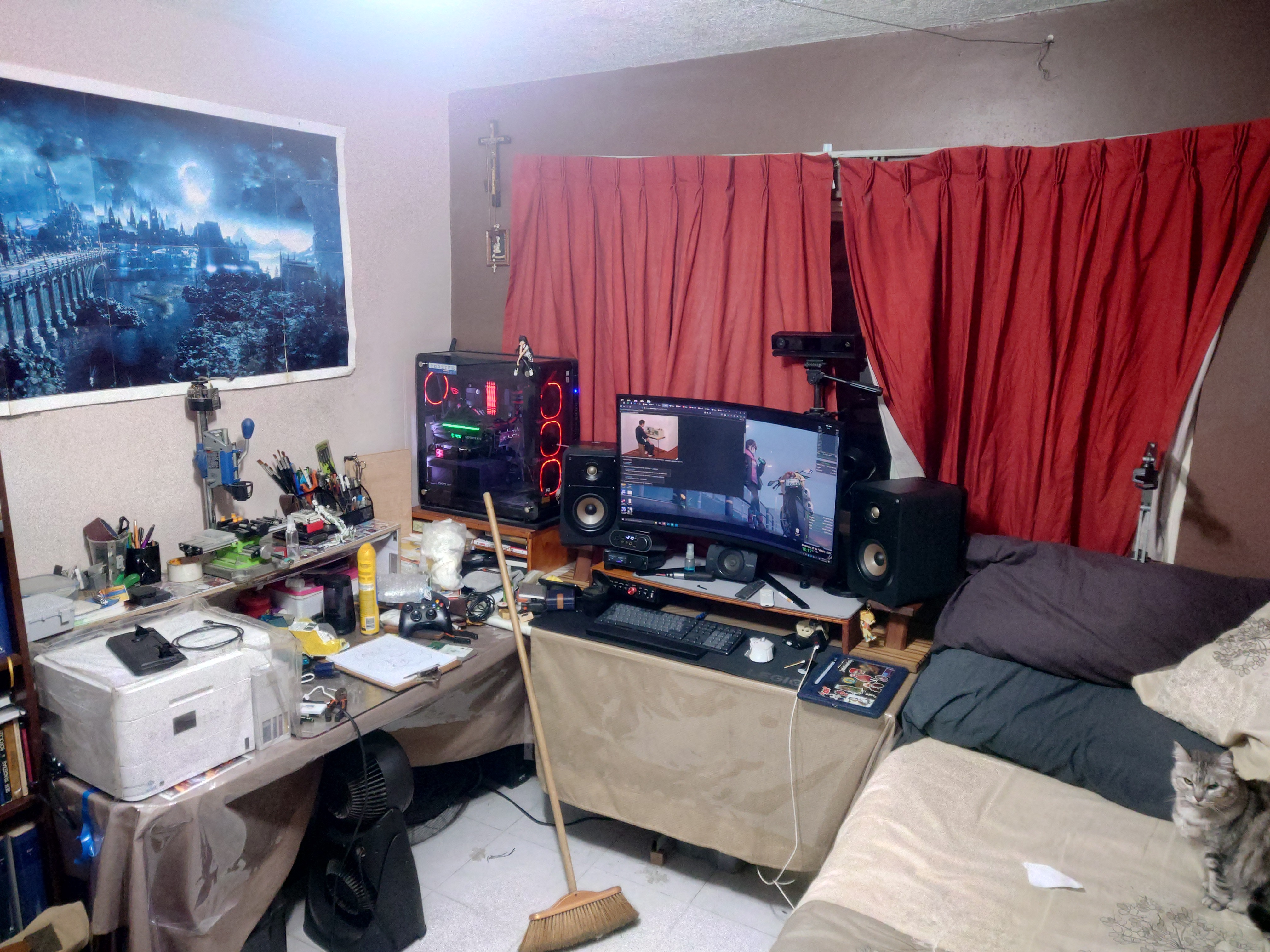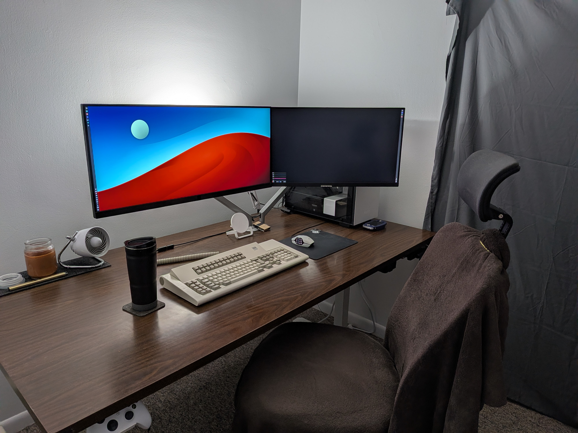 >>108214510Found a pic of my old setup from 2019, genuinely enjoyed it. Afterwards, changed my job, started moving around a lot more and currently I'm on a laptop on a kitchen table, definitely not as comfy.
