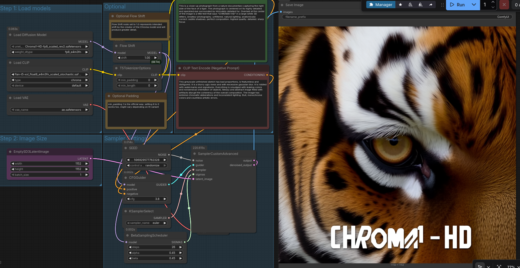 >>108216350chroma hd is scam. the hd tiger is easy to gen;then you try other prompts, and get monsters...
