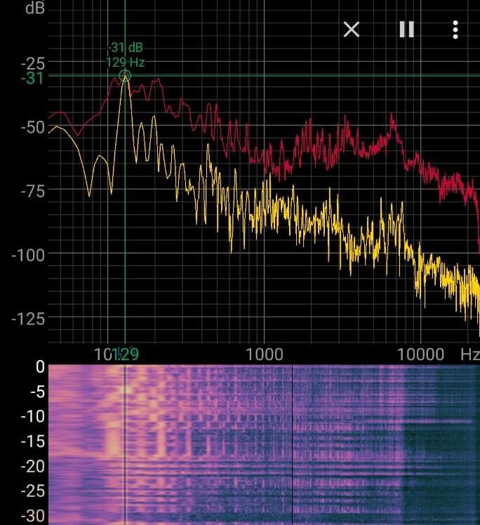 Is there anything I can do to control a very annoying peak I'm getting at exactly 129 Hz? Apparently, it's a very typical resonant frequency in small rooms. My speakers are currently in a room measuring 384 x 340 cm (12.60 ft x 11.15 ft). I've tried lowering the frequency to -3.85 dB with a Q of 5, but it's still very noticeable. The room has a bed, thick curtains, a rug on the wall, and the speakers are on a stand at the same height as my PC monitor and about 60 cm (2 ft) away from the listener.I don't quite understand how this resonance occurs and how I could minimize it. Does anyone know any tricks to avoid it?My equipment is:DAC: Soundblaster AE-9 (ESS SABRE 9038)AMP: RCA - Aiyima A80 (TPA3255D2)Speakers: Polk Signature ES-15