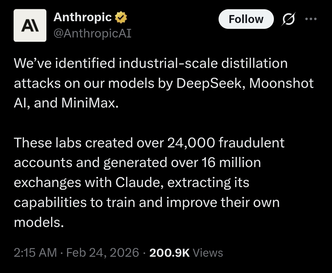 How is model distillation stealing? You guys get irritated by Chinks doing Robin Hood things https://x.com/AnthropicAI/status/2025997928242811253?s=20