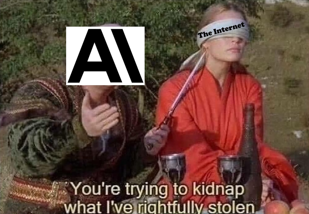 >AYEEEE!! AYEEEEEEEEE!!! NNNNOOOOO>YOU ARE NOT ALLOWED TO TRAIN ON OUR CHATBOT WITHOUT PERMISSIONS, ONLY *WE* ARE ALLOWED TO TRAIN ON OTHER PEOPLE'S WORK WITHOUT PERMISSIONI see absolutely nothing wrong with this.