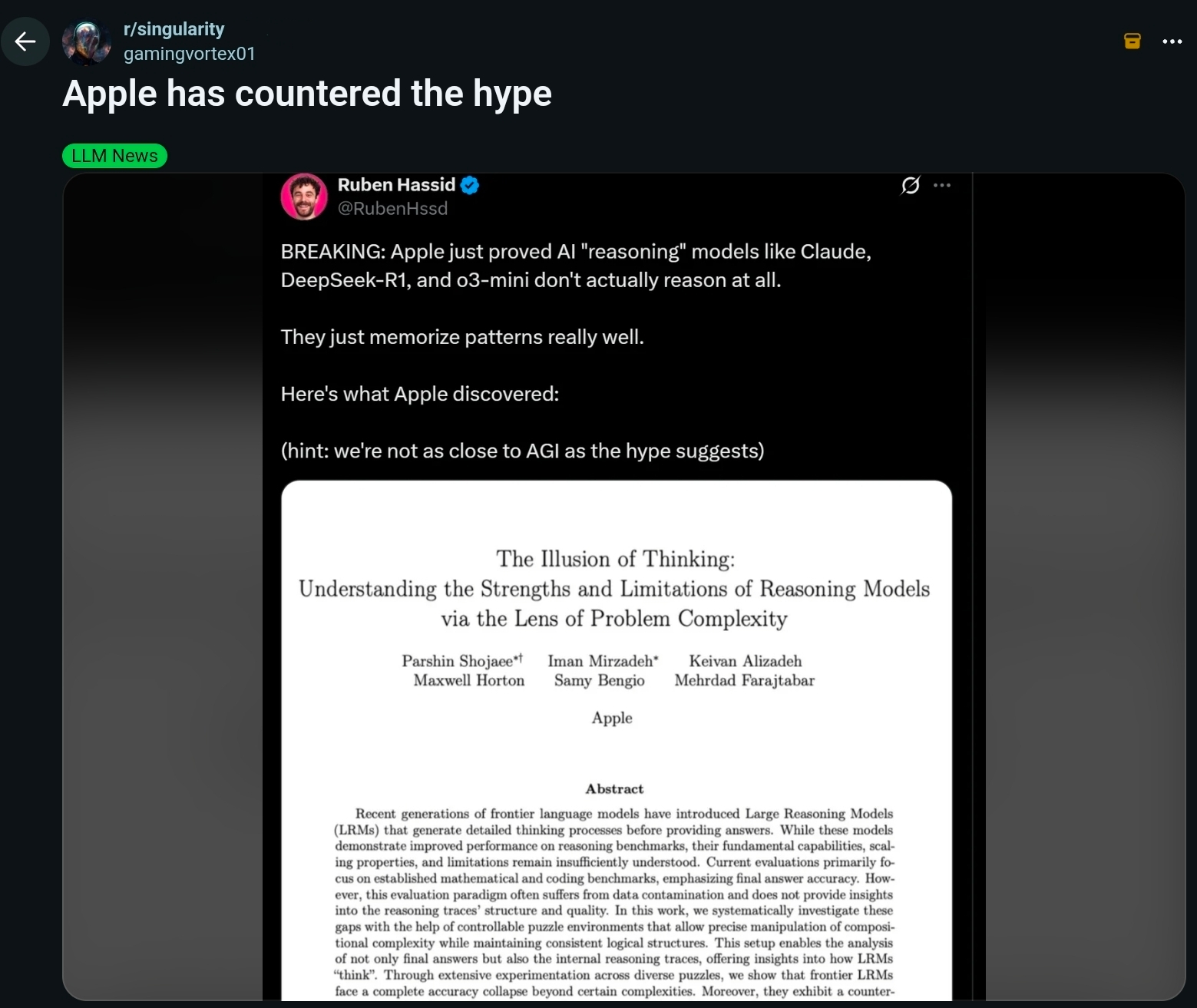 >>108222830>apple is losing the AI race HARD>they decide to claim all achievements from other companies are bullshitkek, classic crapple