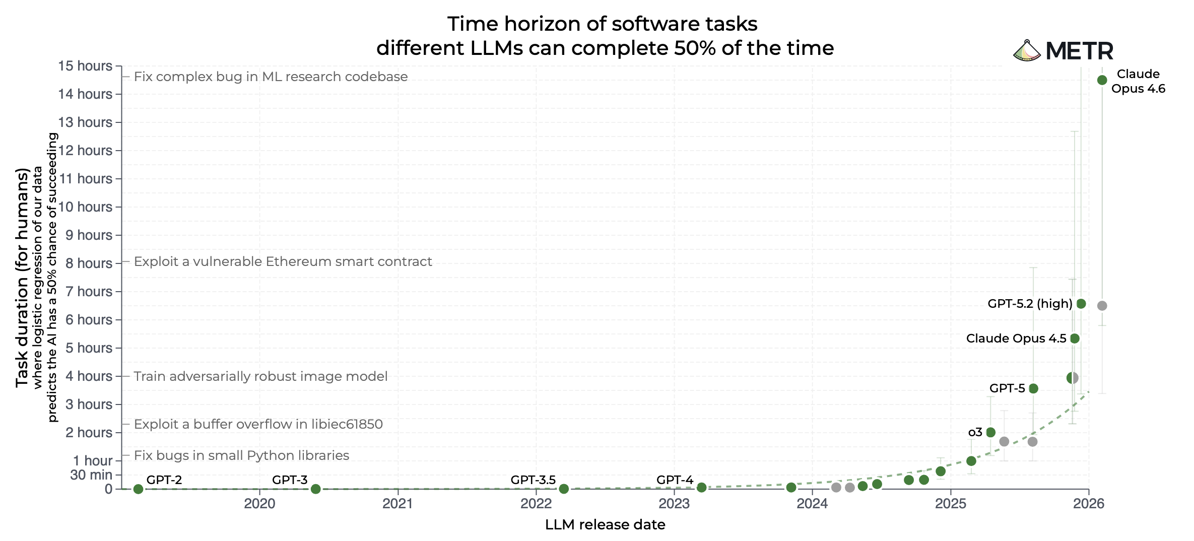 >>108224038To be fair if there was ever a graph that should have big error bars, "Time horizon of software tasks different LLMs can complete 50% of the time" is definitely it.