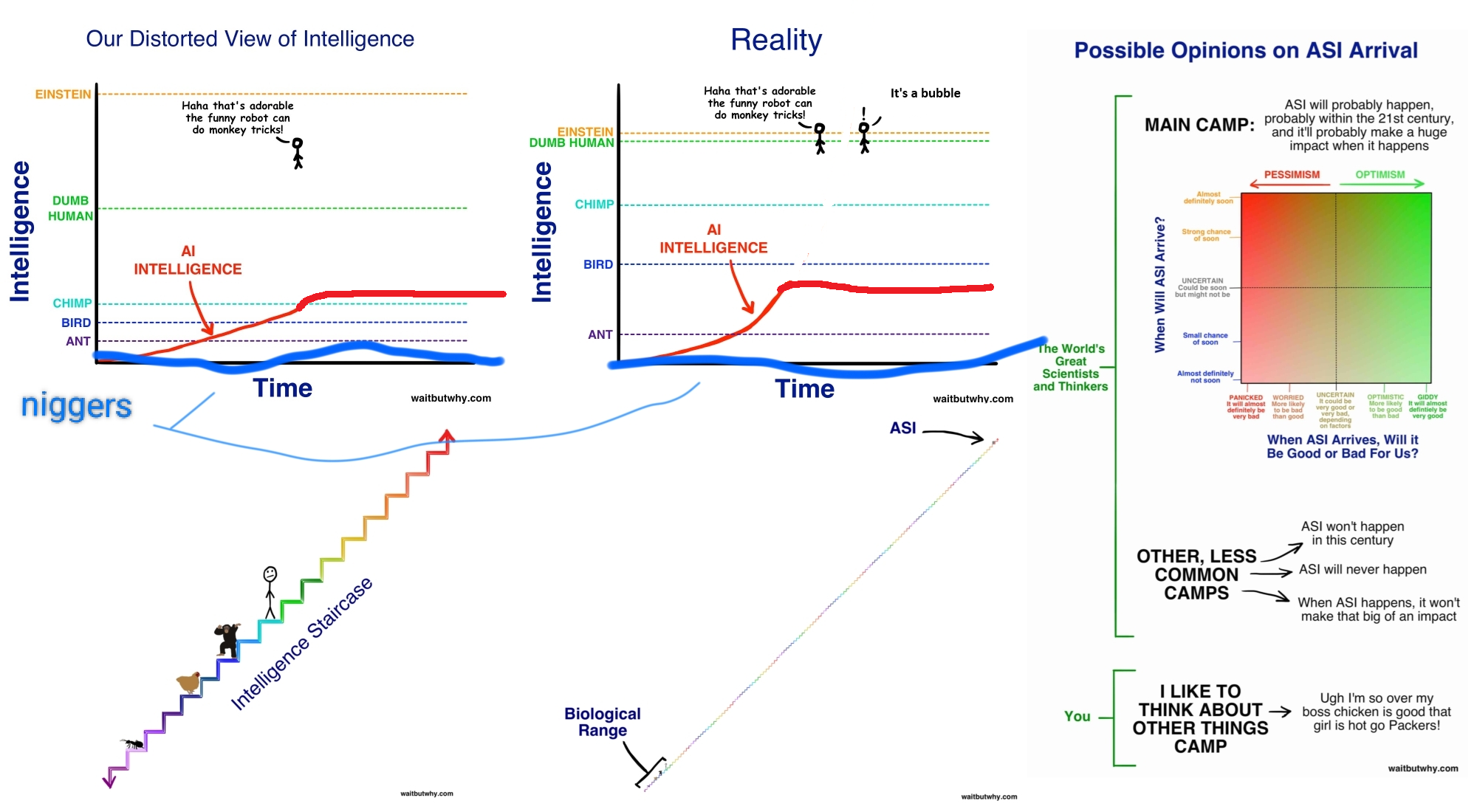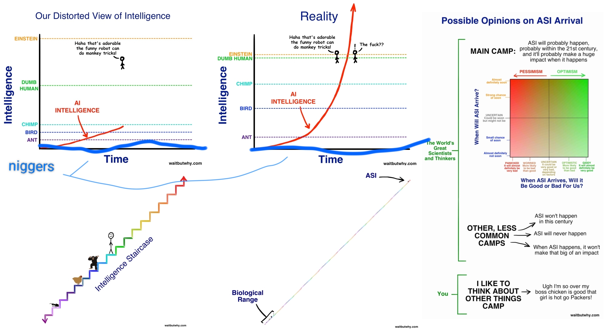 >>108223315>>108223316I told you to understand the argument before posting again. You both failed the assignment.I'm not sure it's worth explaining but just this once I'll hold your fucking hand and coddle you like a toddler.Lets just assume you can do infinite monkeys on a type writer. The monkeys won't know what they're writing. They won't recognize Shakespeare when they see it. And yes you an train the monkeys to recognize Shakespeare by having them all memorize every work he's ever done (basic bitch pattern recognition) but what if Shakespeare didn't exist? How will the monkeys recognize something as good as or better than Shakespeare, but isn't Shakespeare?? How can they understand beauty or art or good or morality? They can't and never will. The end result of infinite monkeys on a typewriter is infinite pages of garbage and ONE page of Shakespeare if you're very lucky AND THAT IS THE CURRENT STATE OF AI with it's fucking 96% failure rate. Just endless slop, and the occasional not slop, but at the end of the day it's still the human doing all the work cause they have to sift through endless trash looking for that one occasional not slop.