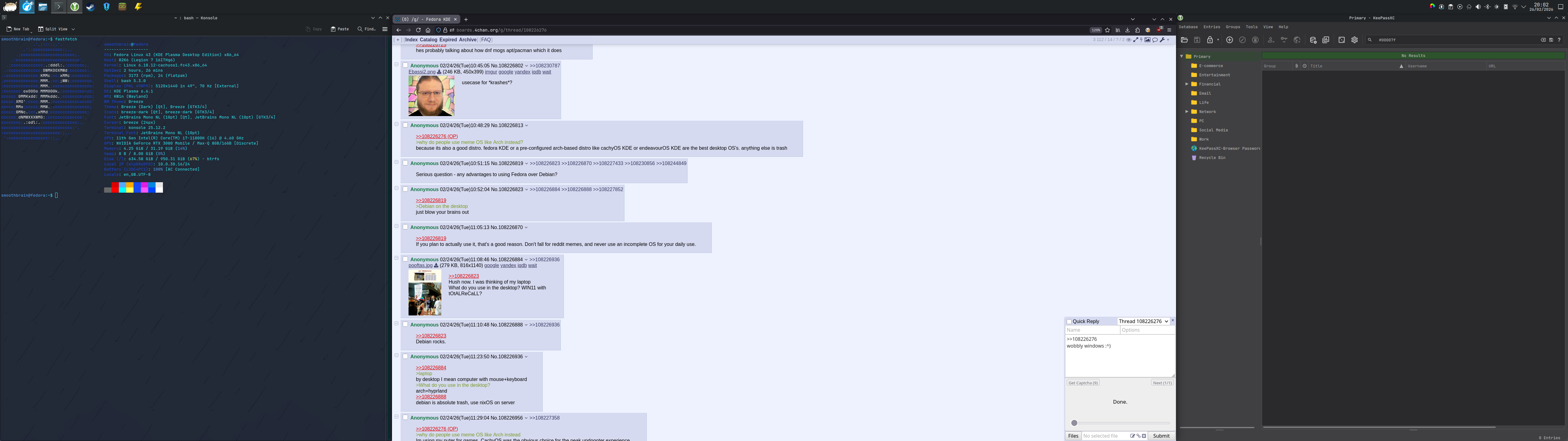 >>108228022>arch kdeI've considered this as an option, but give me a single valid reason why I should bother distrohopping when Fedora KDE just werks perfectly?