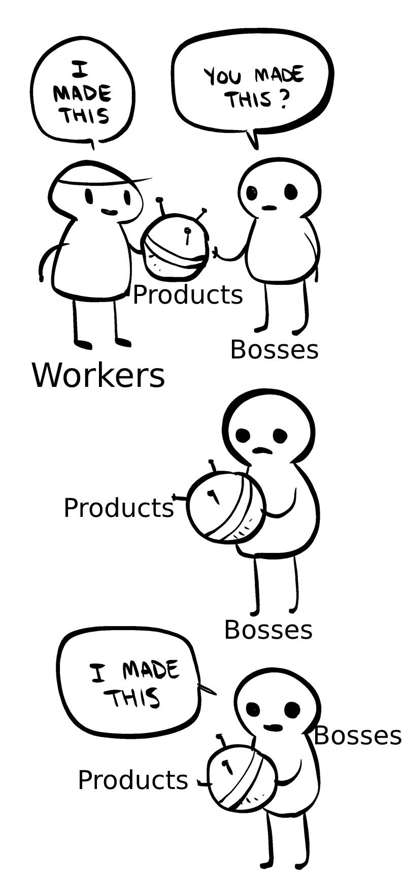 workers just get to buy things more often + eat more expensive garbage.