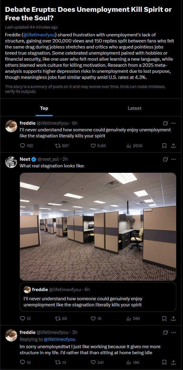 it's easy to not notice when you're on site of neets but lots of people get antsy without work, between those people and the people that will always want more money than his neighbor, there won't be a shortage of people who want to work