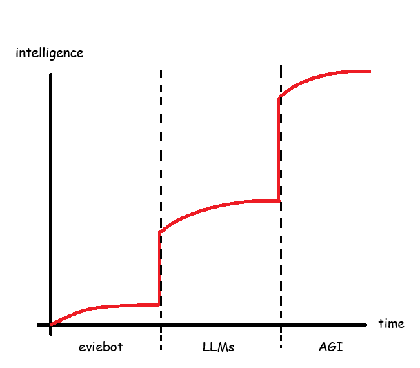 For me I believe in this graph, we won’t achieve AGI through LLMs, instead we will probably discover a different approach in the far future like how generative AI was discovered